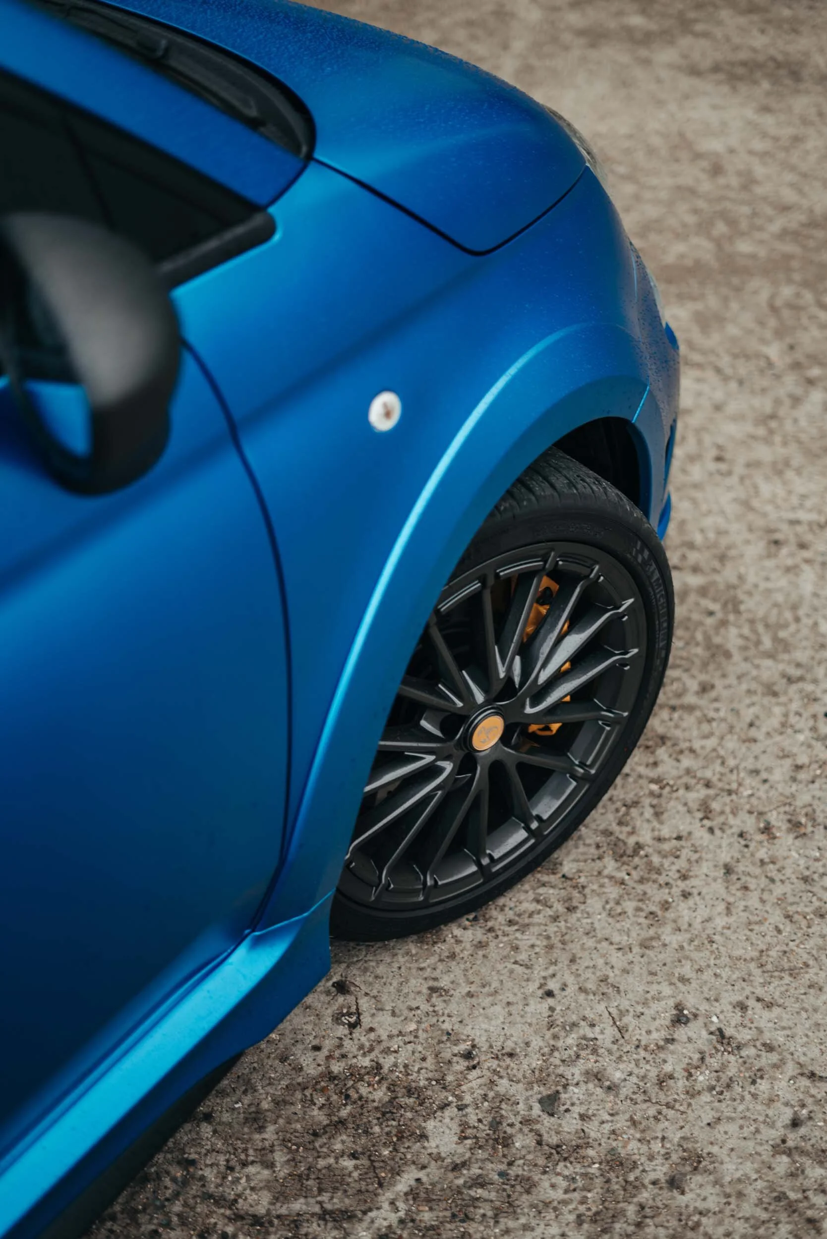 So you have added the aggressive front bumper with the big black air intakes on the awesome matte Blue Rally body. A great way to change the overall appearance of the little cutie with round eyes. Moving to the side and the lower stance, bigger rims (17-inch) with colored brake calipers and a small Abarth logo demands all your attention. If you are distracted, you could also notice some more black details and a different side skirt.